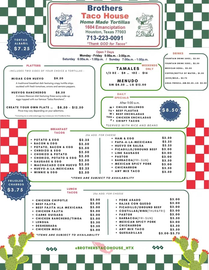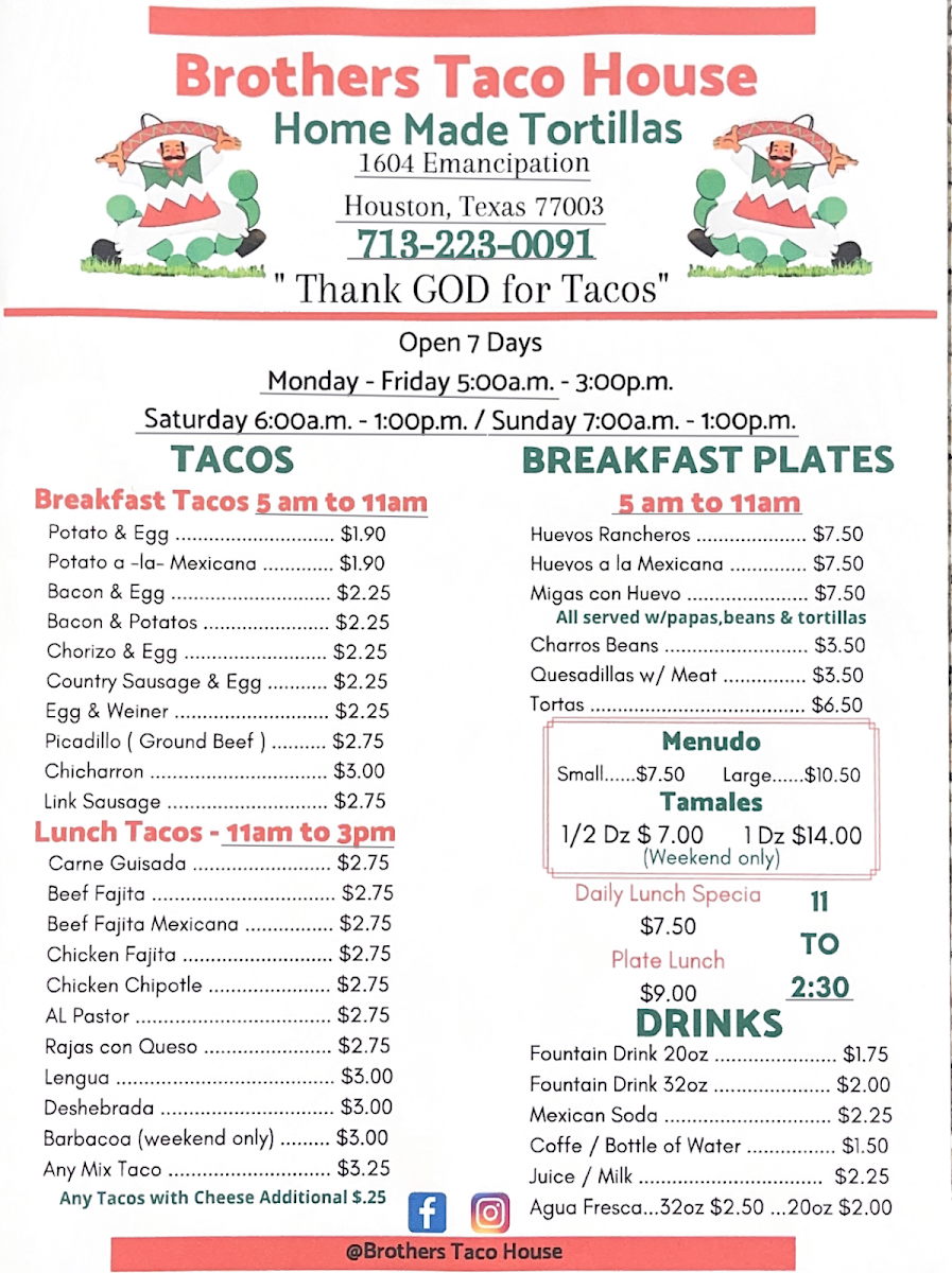 Brothers Taco House Menu